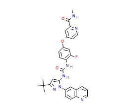 | KDR | VEGFR | TK | 4asd | A | | 4-{4-[({[4-chloro-3-(trifluoromethyl)phenyl]amino}carbonyl)amino]phenoxy}-n-methylpyridine-2-carboxamide | Human | 5333 | 0.40 | |