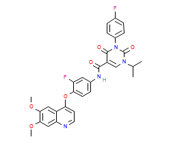 | MET | Met | TK | 3efk | B | | 5-{4-[(6,7-dimethoxyquinolin-4-yl)oxy]-3-fluorophenyl}-2-[(4-fluorophenyl)amino]-3-methylpyrimidin-4(3h)-one | Human | 2988 | 0.51 | |
