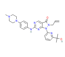 | WEE1 (Wee1) | WEE | Other | 5v5y | A | | 1-[6-(2-hydroxypropan-2-yl)pyridin-2-yl]-6-{[4-(4-methylpiperazin-1-yl)phenyl]amino}-2-(prop-2-en-1-yl)-1,2-dihydro-3h-pyrazolo[3,4-d]pyrimidin-3-one | Human | 8328 | 1.00 | |
